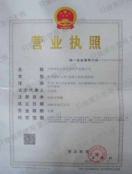 大慶市億豐復(fù)合肥生產(chǎn)有限公司成立于2000年,位于大慶市龍鳳區(qū)臥里屯經(jīng)濟(jì)技術(shù)開(kāi)發(fā)區(qū),與大慶化肥廠(chǎng)毗鄰,注冊(cè)資本3700萬(wàn)元,法定代表人鐘立平, 占地面積15萬(wàn)平方米,建筑面積1.8萬(wàn)平方米,目前現(xiàn)有員工60余人,其中大專(zhuān)以上學(xué)歷30人,占50% ,高級(jí)農(nóng)業(yè)技術(shù)專(zhuān)家5人,有一支 銷(xiāo)售隊(duì)伍25人,公司主要產(chǎn)品有玉米、水稻、大豆、高粱、馬鈴薯、甜菜、小豆及各種經(jīng)濟(jì)作物等摻混肥料、復(fù)合肥料、 有機(jī)無(wú)機(jī)復(fù)混肥料;土壤調(diào)理劑、植物營(yíng)養(yǎng)液、有機(jī)肥料、生物有機(jī)肥、復(fù)合微生物肥料、農(nóng)用微生物菌劑; 大量元素水溶肥料、中量元素水溶肥料、微量元素水溶肥料、含氨基酸水溶肥料